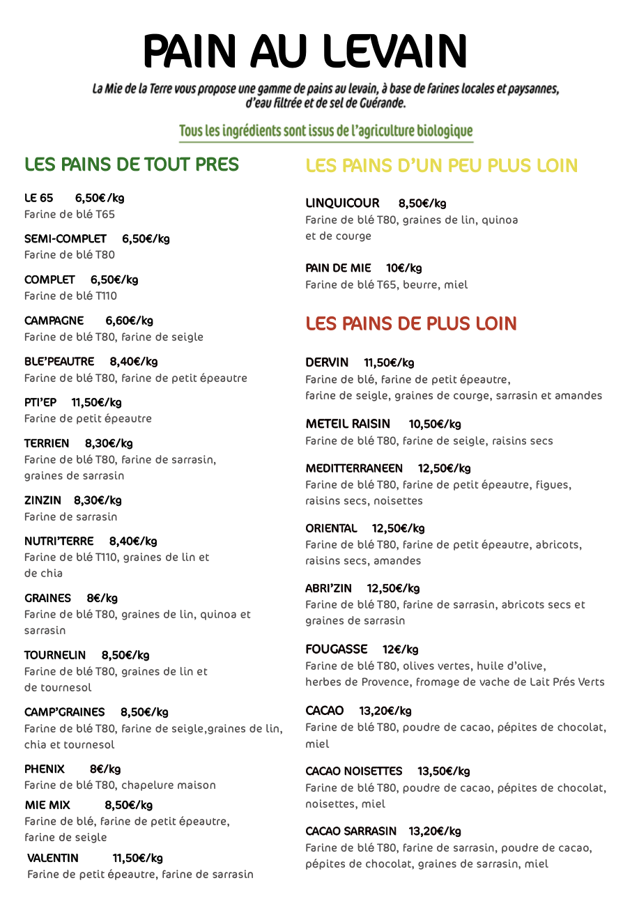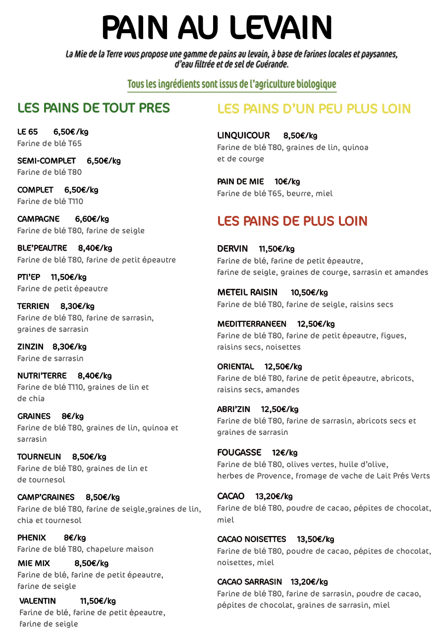 Notre Carte des Pains